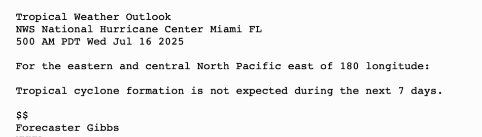 | Tropical Weather Outlook 500 AM PDT Wed 16July 2025 1005 UTC Wed 16July 2025 | |