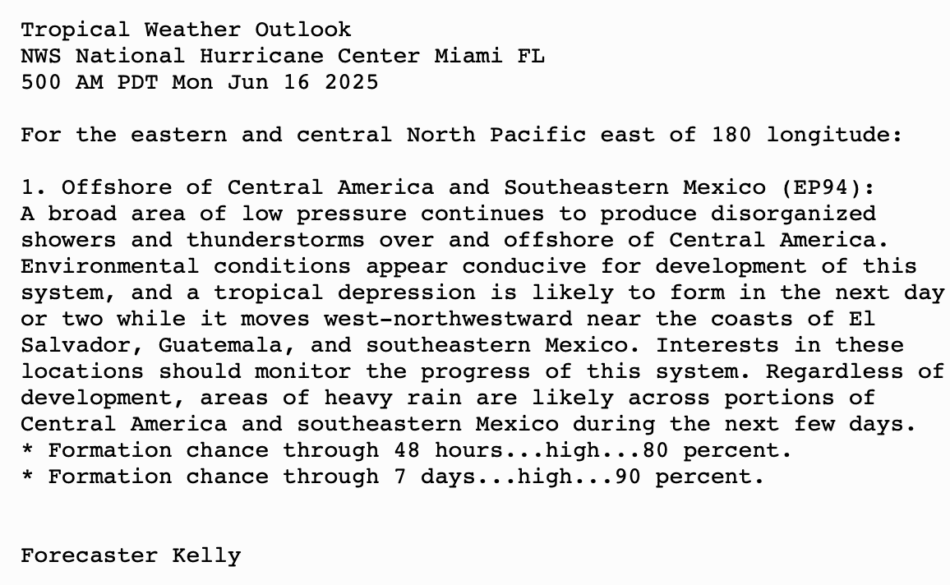 500 AM PDT Mon June 16 2025 Tropical Weather Discussion