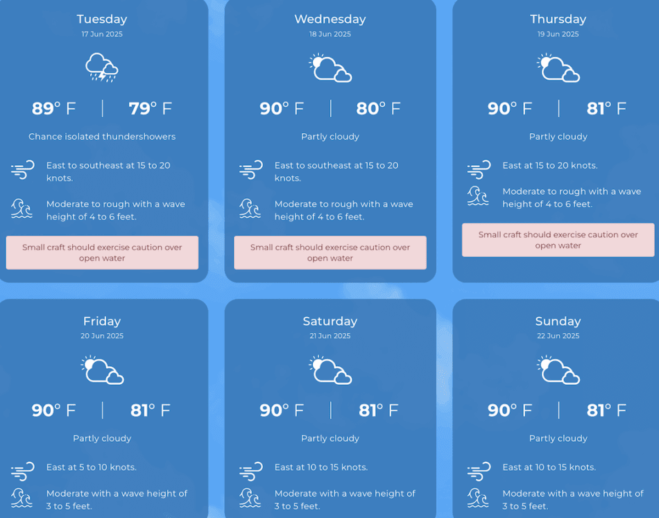 Expected temperatures: 79°F to 89°F. Yesterday: H 90.0°F  L 81.0°F