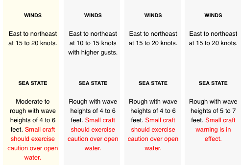 Winds: Today: ENE 15-25 mph Tonight: ENE 10-20 mph