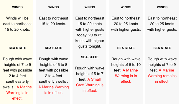 Winds: ENE 15-25 mph Tonight: ENE 15-25 mph
