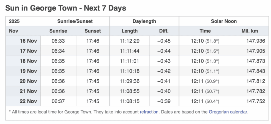 SUN IN GEORGE TOWN – NEXT 7 DAYS