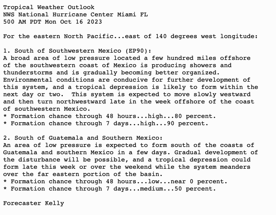 | Tropical Weather Outlook (en Español*) 800 AM EDT Mon 16 Oct 2023 | |