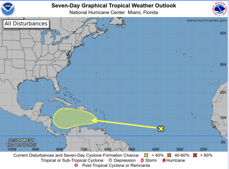 | Tropical Weather Outlook 800 AM EDT Thu 16 Oct 2025 1205 UTC Thu 16 Oct 2025 | |