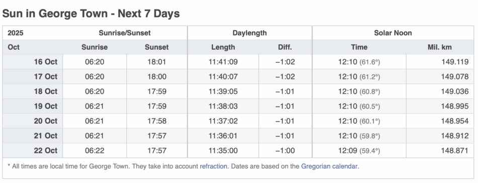 SUN IN GEORGE TOWN – NEXT 7 DAYS