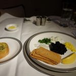 We soon took off as gentle roar of the surprisingly quiet four engines on the A380 came to life. I decided to start with chilled caviar along with garlic toast.