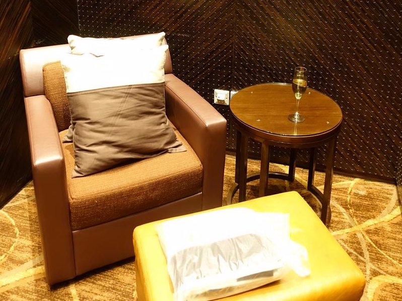 After my amazing meal, I took a quick nap in one of three small private relaxation rooms at the back of the lounge. Pillows and blankets were provided, along with some champagne.