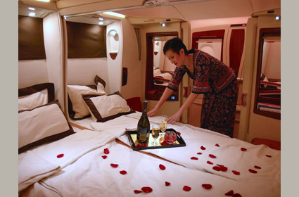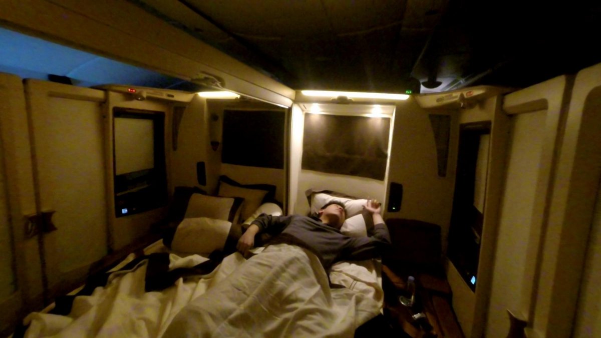 But last Christmas Eve, Huang got to sample what might be the most luxurious private airline cabin: Singapore Airlines’ doubled-sized private bed, which combines two adjoining suites, and is usually reserved for couples.
