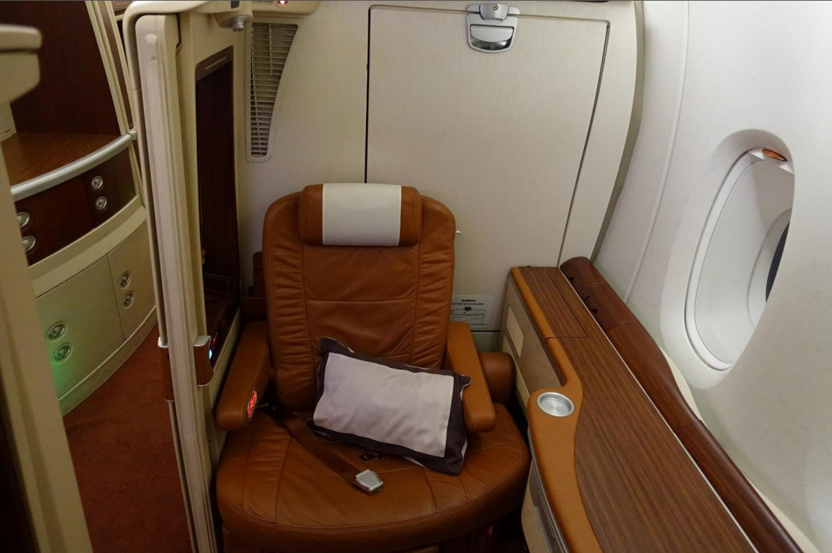 I woke up as the flight boarding, wished the wonderful a staff a happy holidays, and headed down the king of jets, the A380. The leather creamed finished suite, designed by French luxury yacht designer Jean-Jacques Coste, looks much taller and spacious up close.