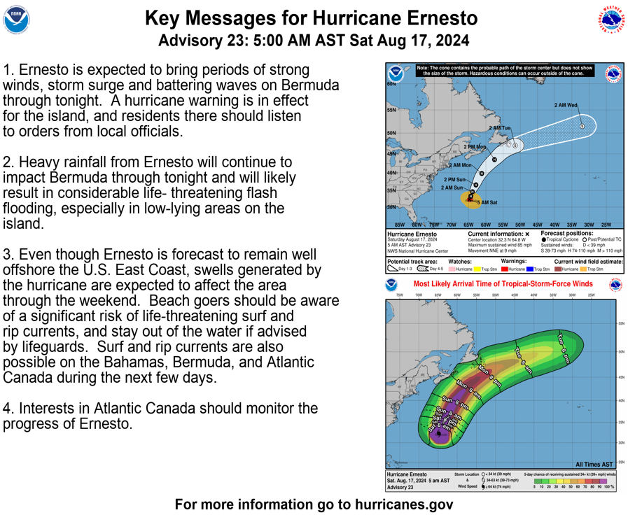 EERNESTO’S CENTER BEGINNING TO MOVE AWAY FROM BERMUDA AND WINDS HAVE PICKED BACK UP ON THE ISLAND… …HAZARDOUS CONDITIONS WILL CONTINUE ON BERMUDA THROUGH THIS EVENING