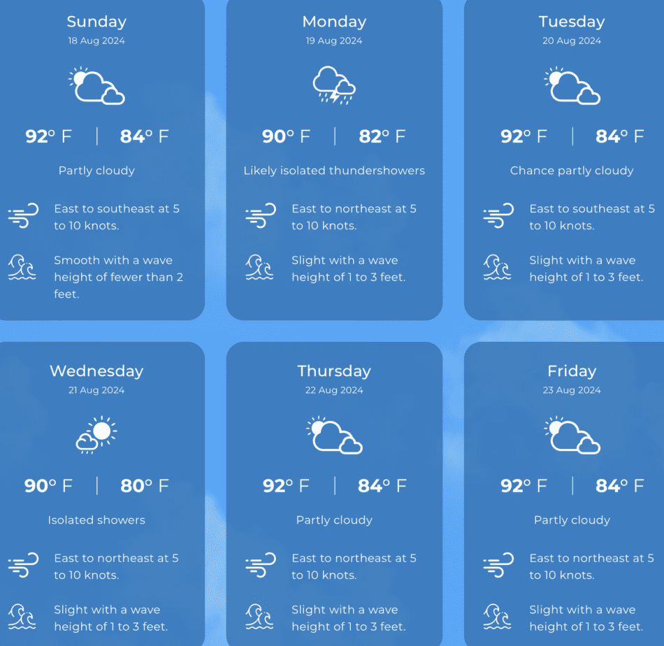 Expected temperatures: 82°F to 90°F. Yesterday: H 92.1°F L 82.3°F
