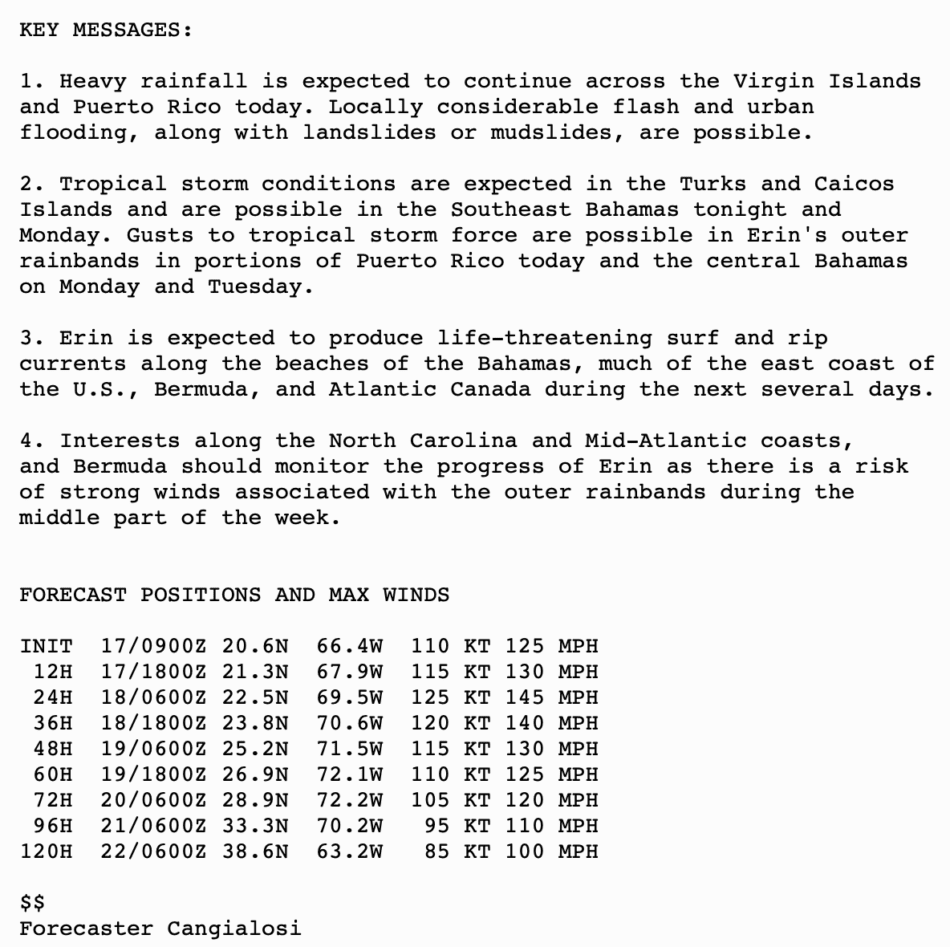 ERIN’S OUTER RAINBANDS CONTINUING TO PRODUCE GUSTY WINDS AND HEAVY RAINS ACROSS THE VIRGIN ISLANDS AND PUERTO RICO
