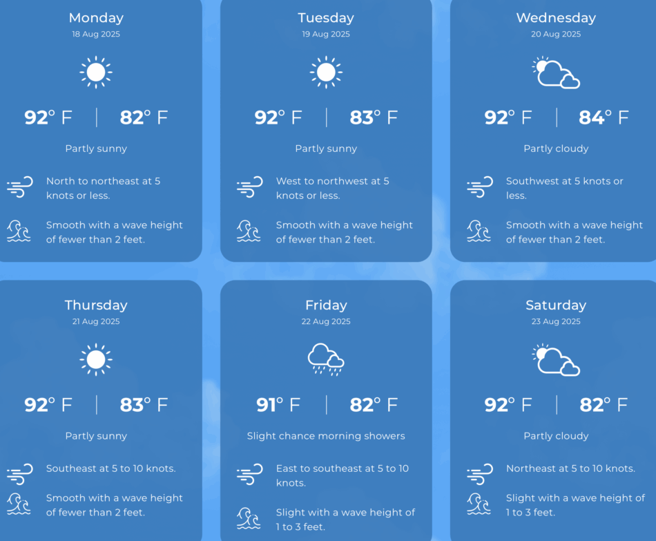 Expected temperatures: 82°F to 92°F. Yesterday: H 92.0°F L 81.5°F