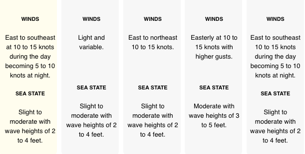 Winds: Today E 10-20 mph Tonight: E 5-10 mph