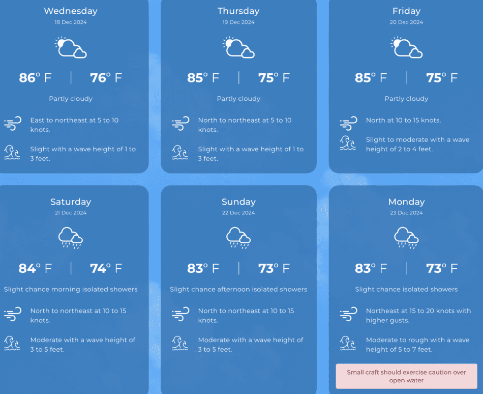 IMPORTANT NOTICEThe times reflected in the tidal table for Grand Cayman are predictions valid as references for sports fishing in areas near the coast of Grand Cayman. THEY ARE NOT SUITABLE FOR NAVIGATION. Remember that to practice any activity at sea like diving, windsurfing and fishing from a boat or underwater fishing should always be consulted with the official tide tables of the port of Grand Cayman.