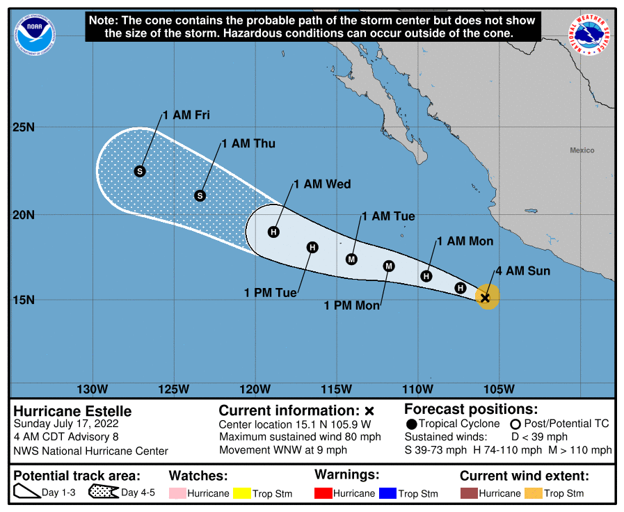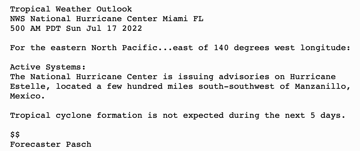 | Tropical Weather Outlook 500 AM PDT Sun July 17 2022 Tropical Weather Discussion 1005 UTC Sun July 17 2022 | |