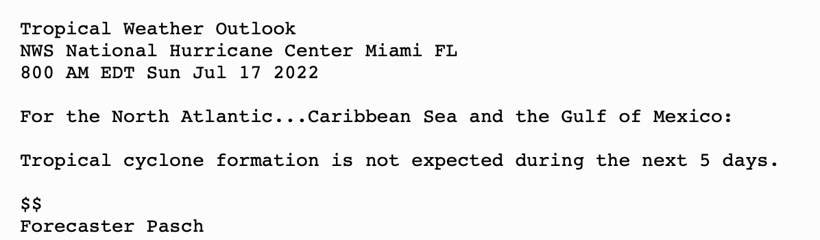 | Tropical Weather Outlook Text | Tropical Weather Discussion |