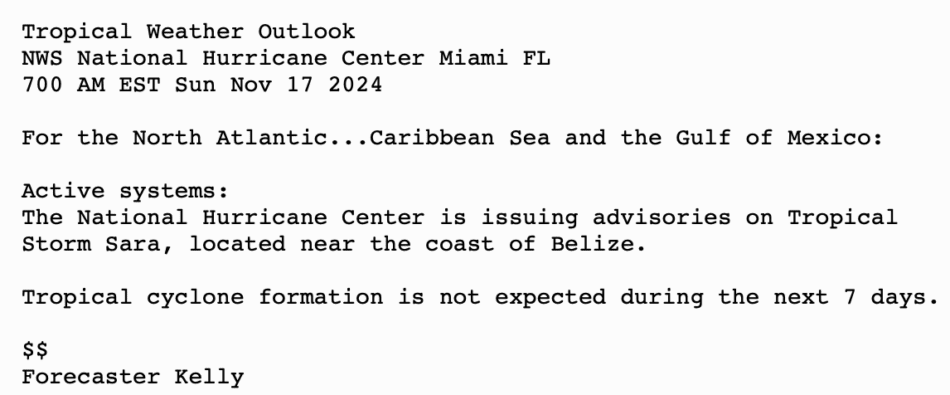 17 Nov Weather in Cayman & Tropical Report, 1 TS