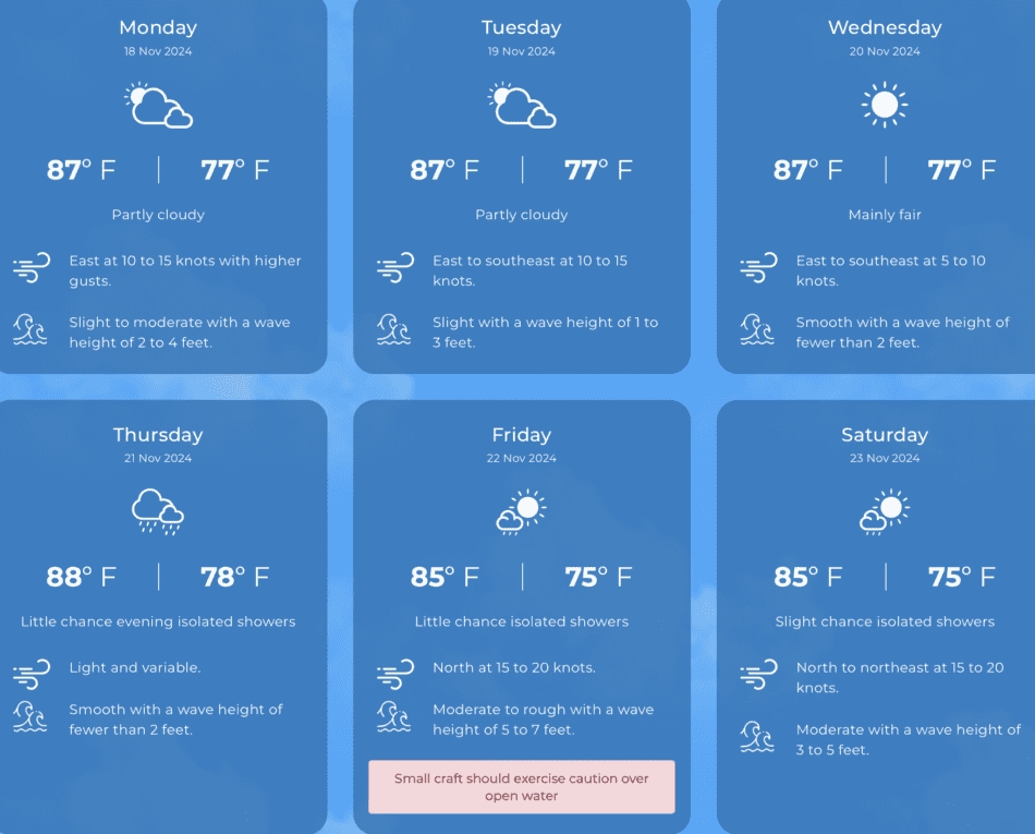 IMPORTANT NOTICEThe times reflected in the tidal table for Grand Cayman are predictions valid as references for sports fishing in areas near the coast of Grand Cayman. THEY ARE NOT SUITABLE FOR NAVIGATION. Remember that to practice any activity at sea like diving, windsurfing and fishing from a boat or underwater fishing should always be consulted with the official tide tables of the port of Grand Cayman.