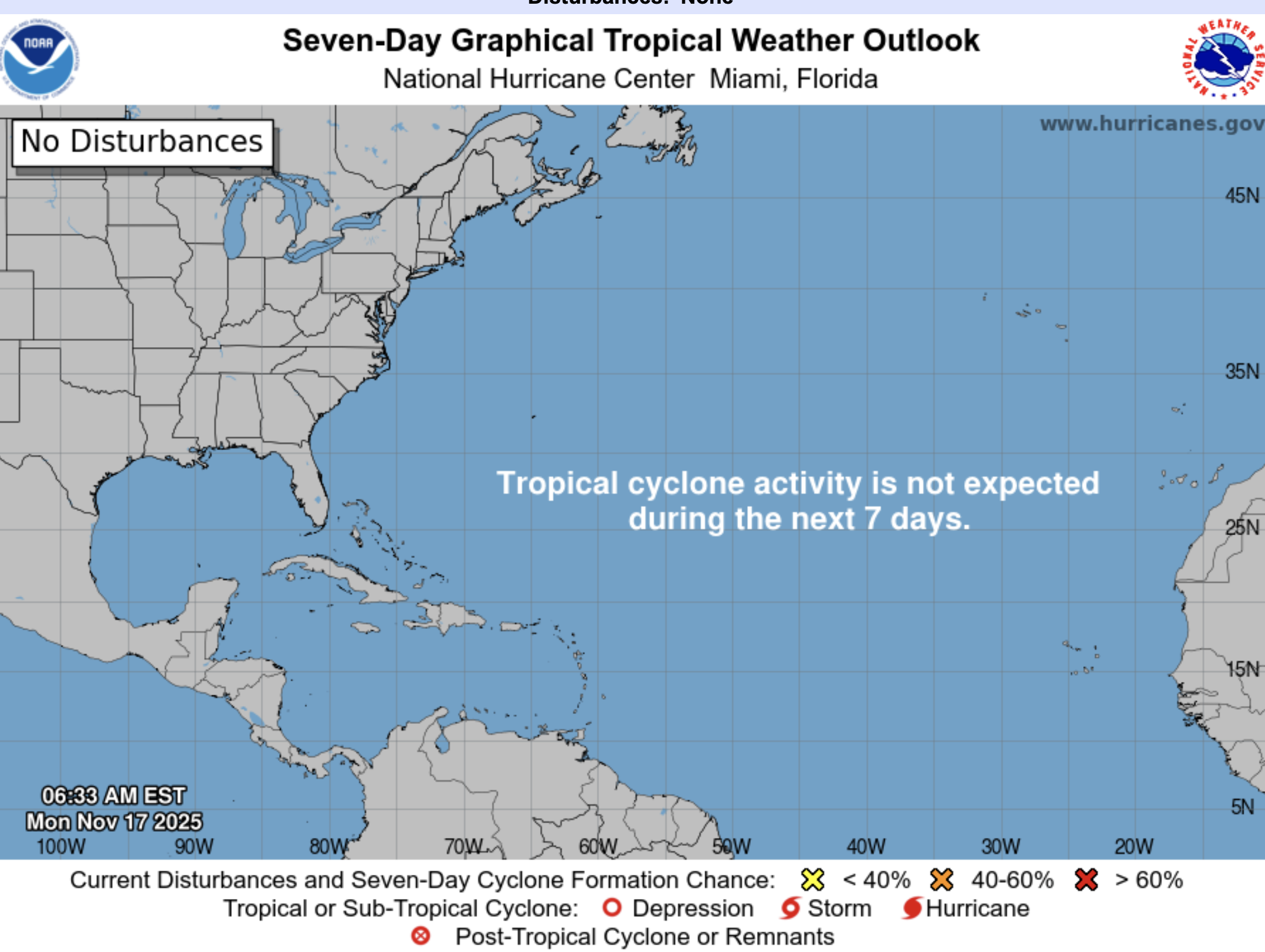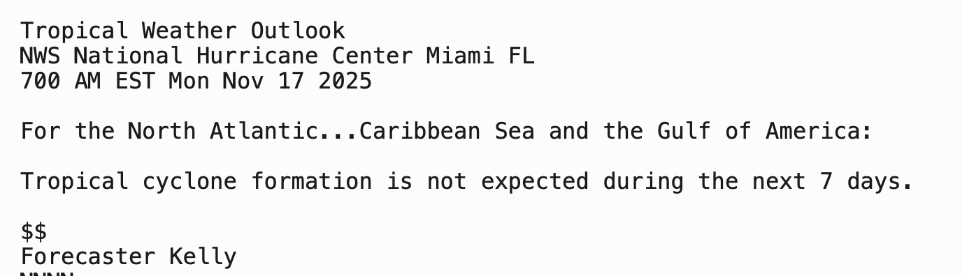 | Tropical Weather Outlook 800 AM EDT Mon 17 Nov 2025 1205 UTC Mon 17 Nov 2025 | |