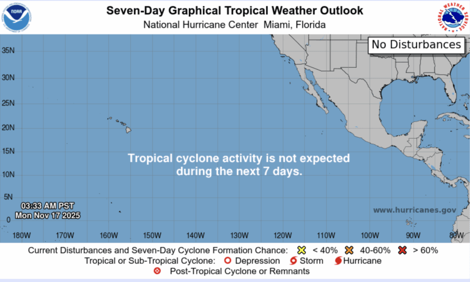 | Tropical Weather Outlook 500 AM PDT Mon 17 Nov 2025 1005 UTC Mon 17 Nov 2025 | |