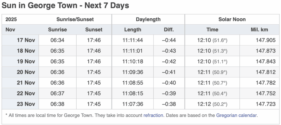 SUN IN GEORGE TOWN – NEXT 7 DAYS