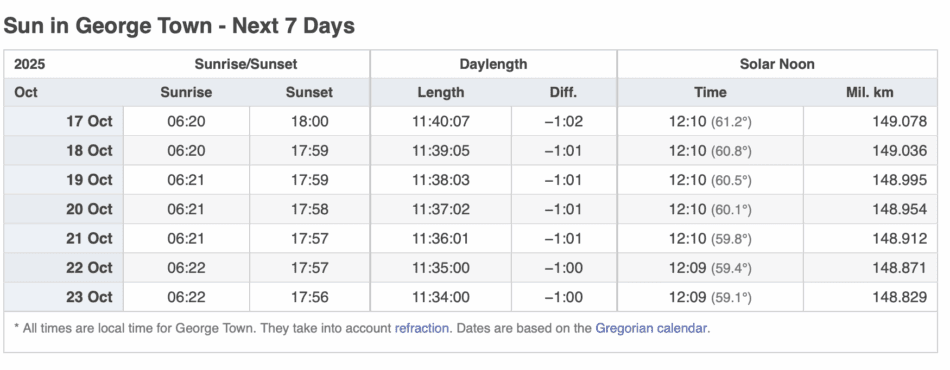 SUN IN GEORGE TOWN – NEXT 7 DAYS
