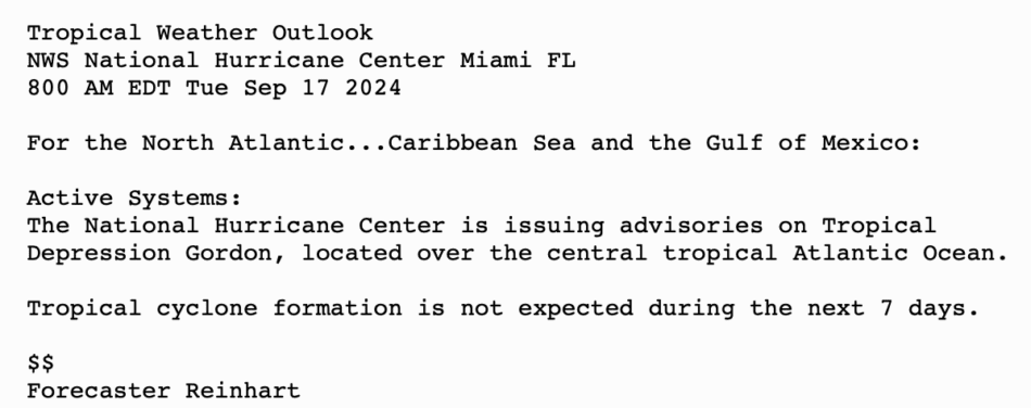 | Tropical Weather Outlook Text | Tropical Weather Discussion |