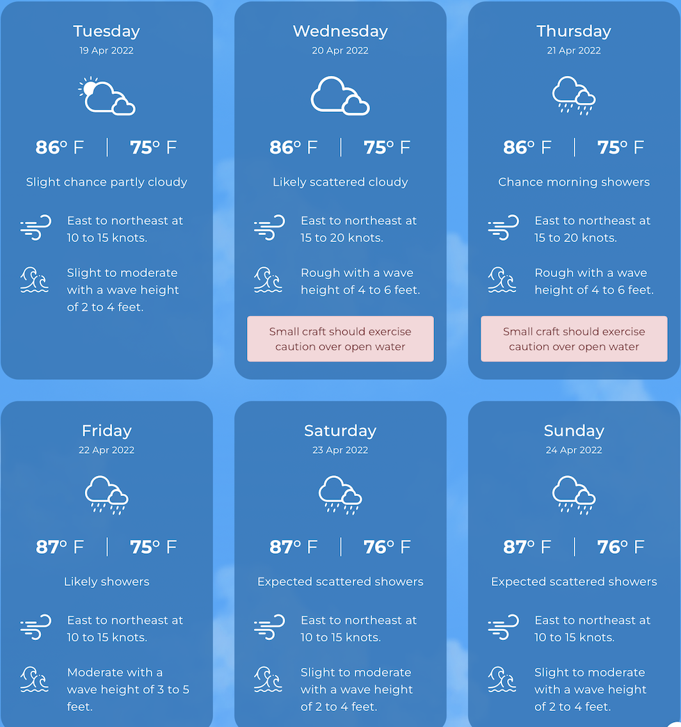 IMPORTANT NOTICEThe times reflected in the tidal table for Grand Cayman are predictions valid as references for sports fishing in areas near the coast of Grand Cayman. THEY ARE NOT SUITABLE FOR NAVIGATION. Remember that to practice any activity at sea like diving, windsurfing and fishing from a boat or underwater fishing should always be consulted with the official tide tables of the port of Grand Cayman.