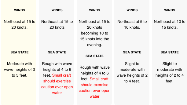 Fresh northeasterly winds and seas are expected for the next 24 hours across the Cayman area as a high pressure system builds over the southeast US.