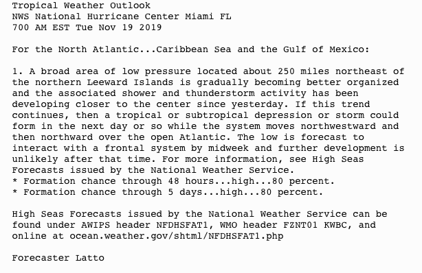 19 Nov 2019 Weather in Cayman & Tropical Report, 1 Dist.