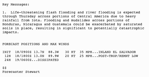 IOTA WEAKENS TO A TROPICAL DEPRESSION OVER EL SALVADOR… …THREAT OF CATASTROPHIC FLASH FLOODING AND MUDSLIDES WILL CONTINUE ACROSS PORTIONS OF CENTRAL AMERICA