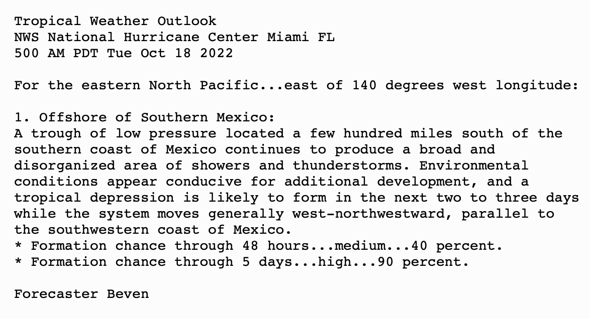 Tropical Weather Outlook Text