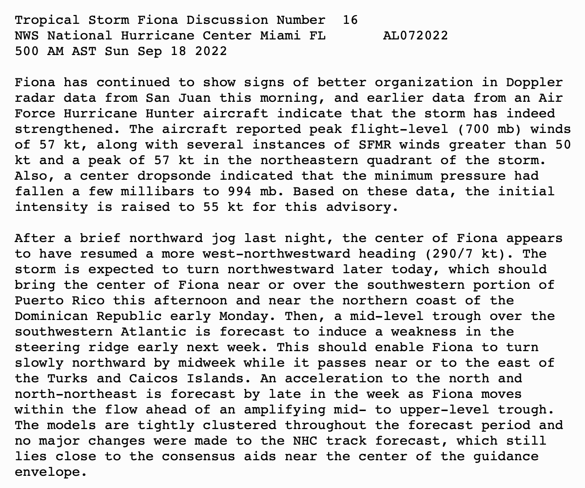 .FIONA FORECAST TO BECOME A HURRICANE LATER TODAY… …LIFE-THREATENING FLOODING AND MUDSLIDES EXPECTED ACROSS PUERTO RICO AND THE DOMINICAN REPUBLIC
