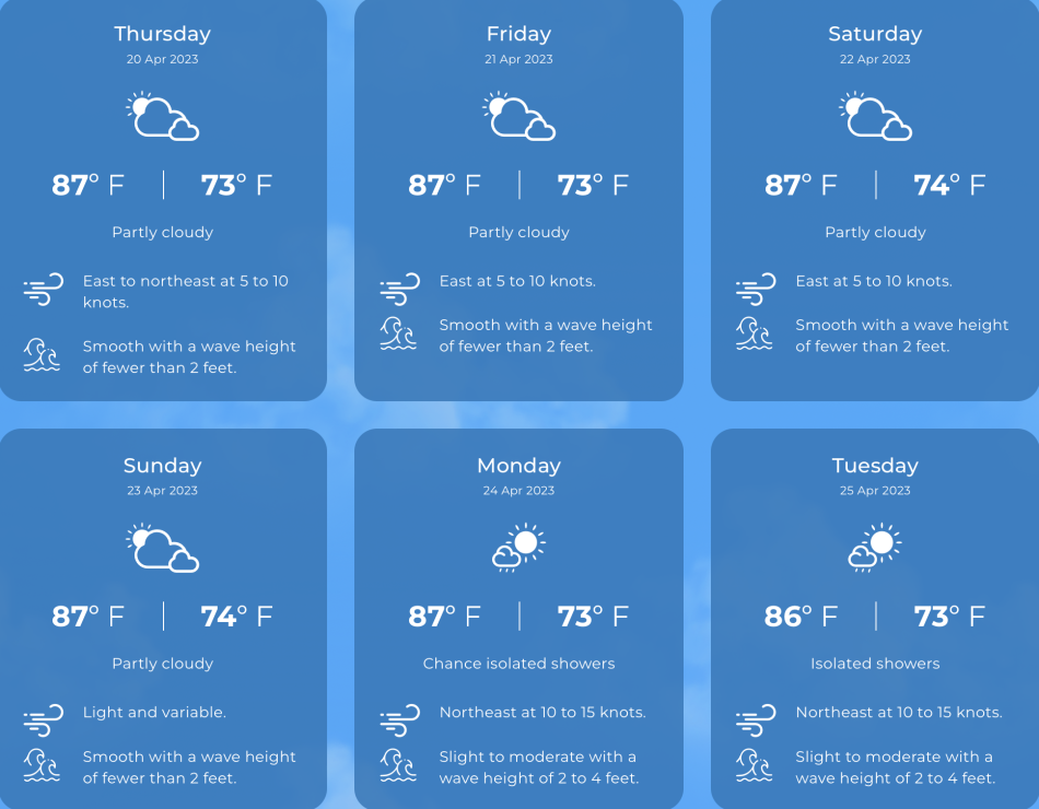 Temperatures: Yesterday – Low 74.2°F, High 86.3°F Today (Expected) – Low 76°F High 86°F