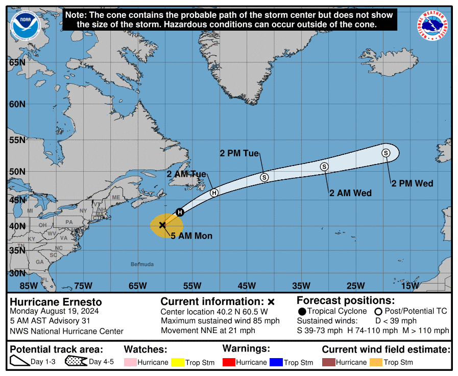 ERNESTO STRENGTHENS A LITTLE MORE… …DANGEROUS BEACH CONDITIONS CONTINUING ALONG THE U.S. EAST COAST AND ATLANTIC CANADA THROUGH EARLY THIS WEEK