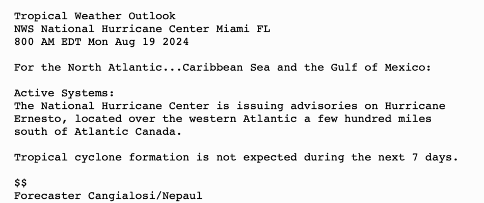 | Tropical Weather Outlook Text | Tropical Weather Discussion |