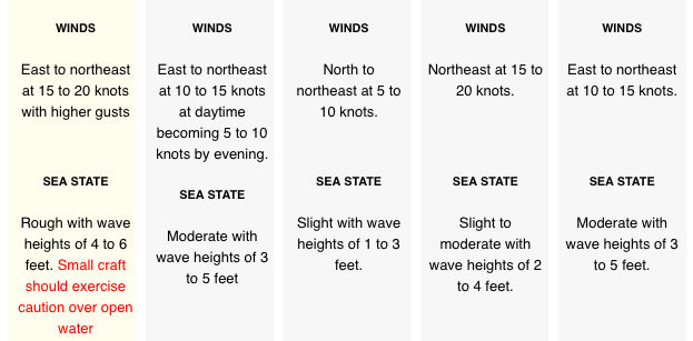 Winds: Today: NE 15-25 mph. Tonight: NE 15-25 mph
