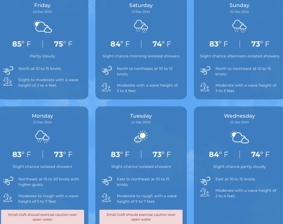 Expected temperatures: 75°F to 85°F. Yesterday: H 86.2°F L 76.3°F