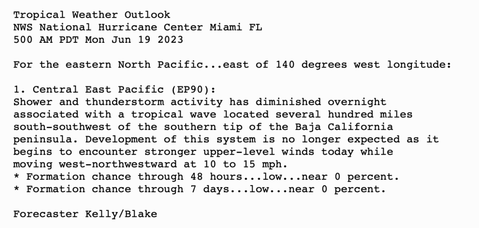| Tropical Weather Outlook (en Español*) 800 AM EDT Mon Jun 19 2023 | |