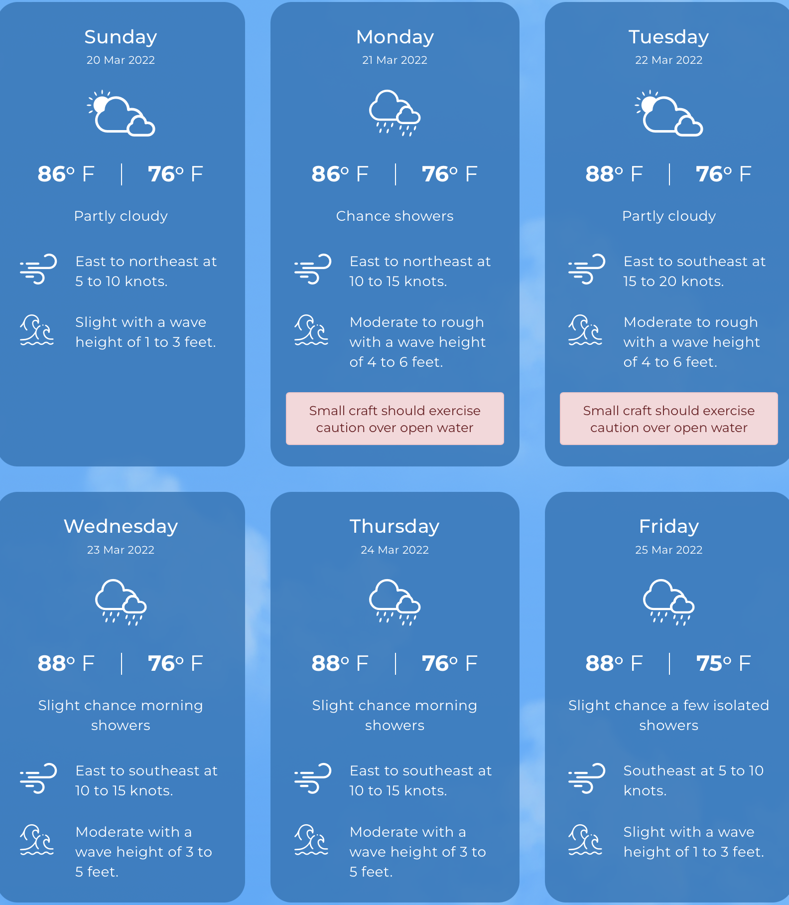 Light winds and slight seas are expected over the Cayman area due to a weak pressure gradient over the northwest Caribbean as cold front moves across the Gulf of Mexico. Sea: Slight with a wave height of 1 to 3 feet.