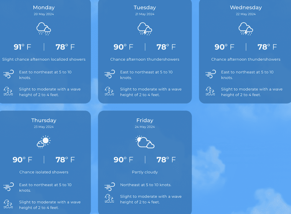 IMPORTANT NOTICEThe times reflected in the tidal table for Grand Cayman are predictions valid as references for sports fishing in areas near the coast of Grand Cayman. THEY ARE NOT SUITABLE FOR NAVIGATION. Remember that to practice any activity at sea like diving, windsurfing and fishing from a boat or underwater fishing should always be consulted with the official tide tables of the port of Grand Cayman.