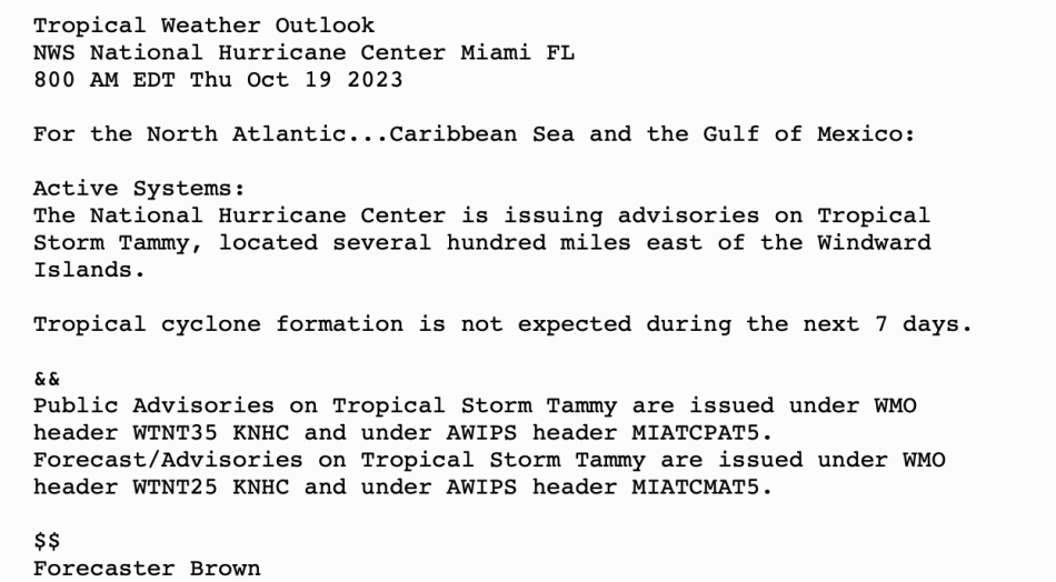 | Tropical Weather Outlook (en Español*) 800 AM EDT Thu 19 Oct 2023 | |