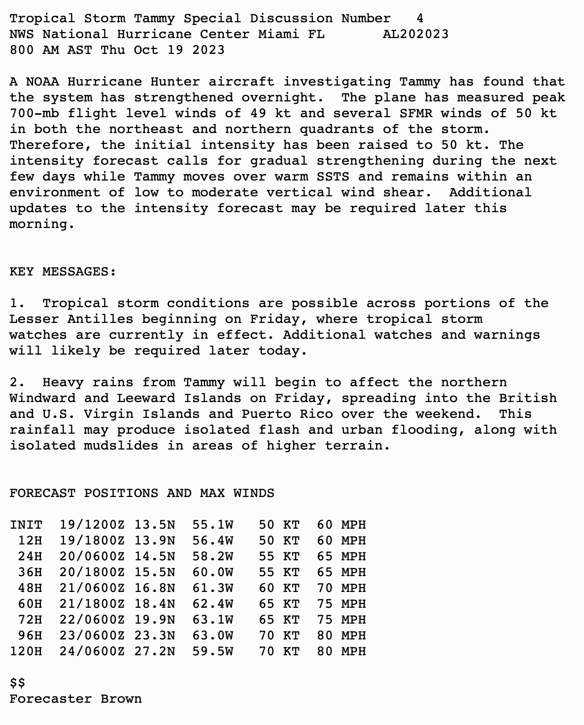 NOAA HURRICANE HUNTER AIRCRAFT FIND TAMMY STRONGER… …TROPICAL STORM CONDITIONS AND HEAVY RAIN ARE POSSIBLE BEGINNING FRIDAY