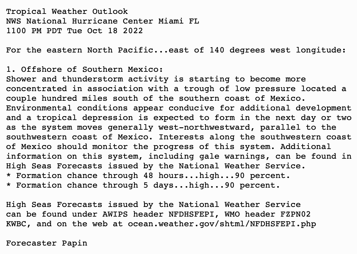| Tropical Weather Outlook 500 AM PDT Wed Oct 19 2022 1005 UTC Wed Oct 19 2022 | |