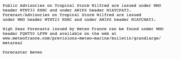 WOEFUL TS WILFRED HEADING WEST-NORTHWESTWARD