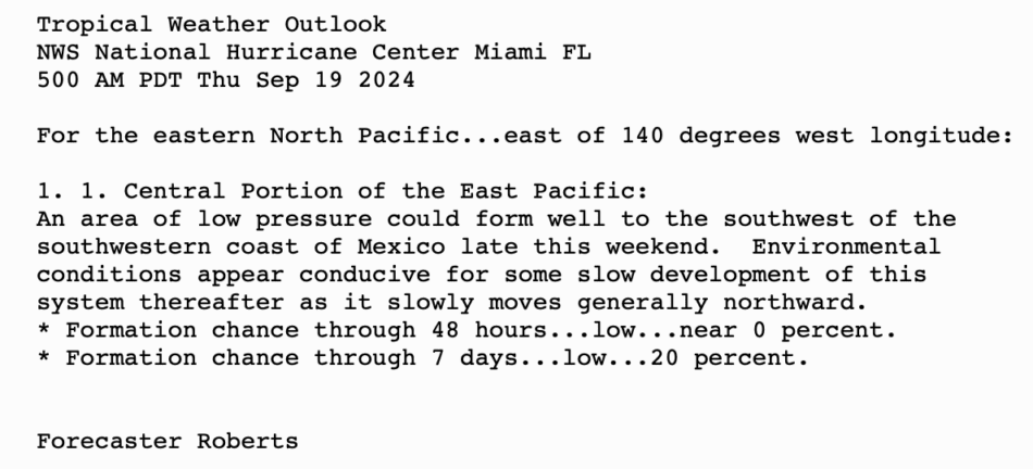 | Tropical Weather Outlook Text | Tropical Weather Discussion |