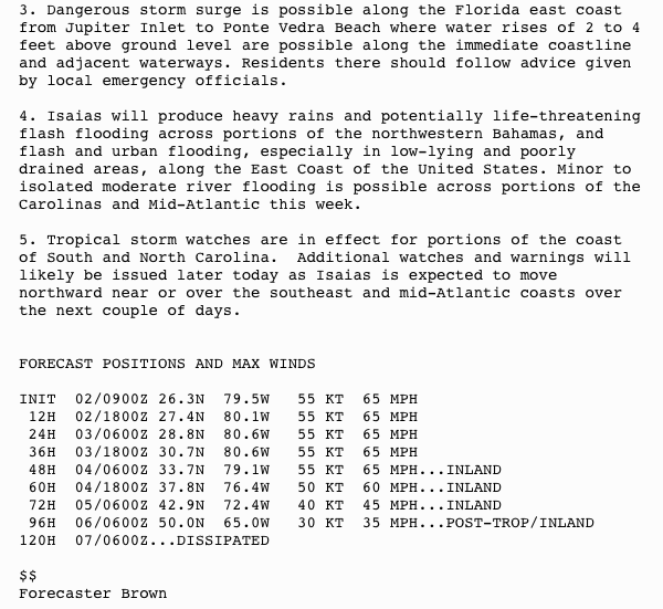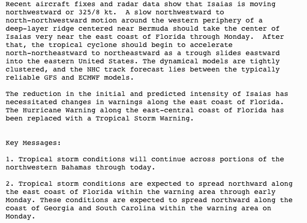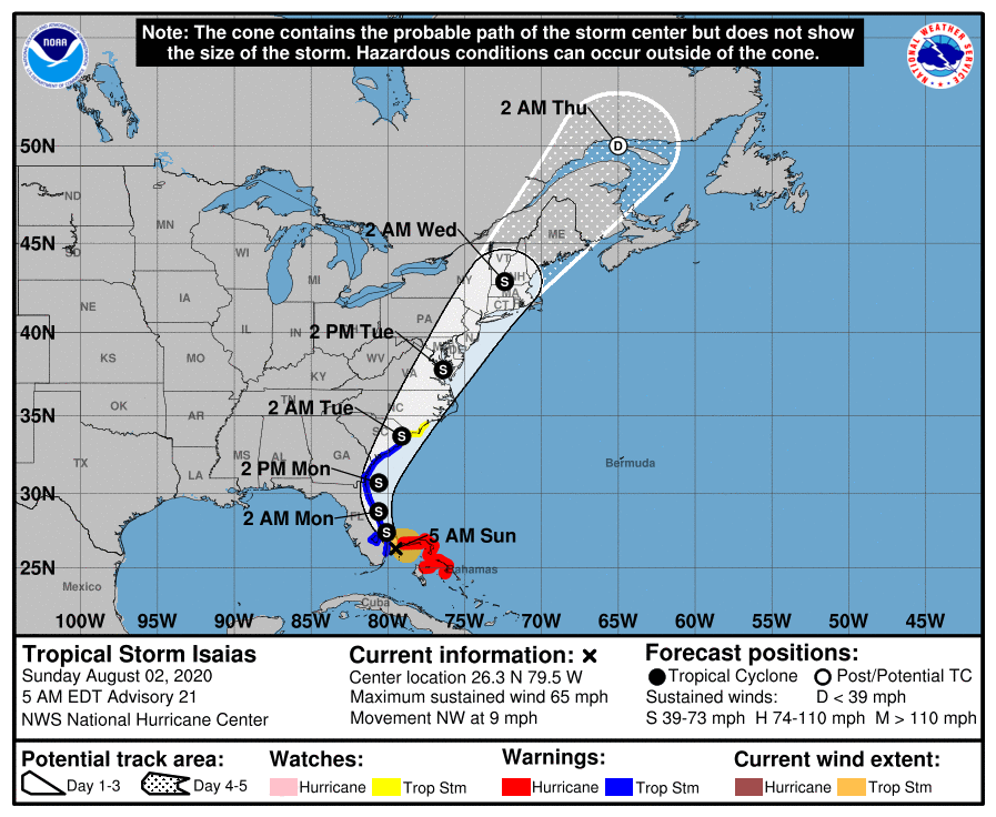 ISAIAS CONTINUES TO BRING HEAVY RAINFALL AND GUSTY WINDS TO THE NORTHWESTERN BAHAMAS… …TROPICAL STORM CONDITIONS NEARING THE EAST COAST OF FLORIDA…