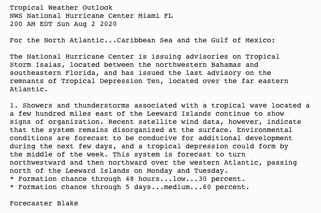 800 AM EDT Sun Aug 2 2020
