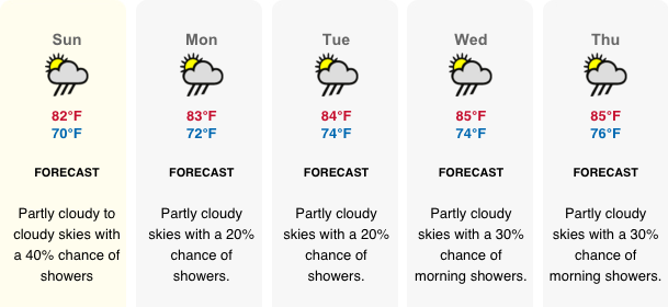 Temperature: Today’s expected temperatures – 74°F to 86°F. Yesterday: H 86.5°F L 73.6°F